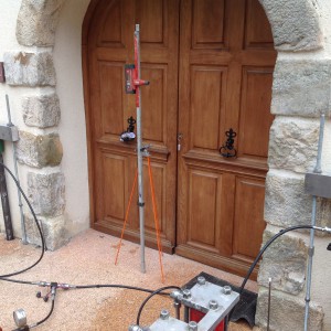 Intervention : Consolidation et soulèvement des fondations (+ 15 cm) sur environ 4 mètres linéaires avec n° 2 LIFT PILE®, micropieux MP60 en acier (marquage CE selon directive européenne EN 1090-1:2009) avec pré-charge (Brevet Européen déposé nr. 2918731B1), et injections de résine KERASTABLE® à haute densité de type HDR® (Polymères expansifs) en libre diffusion.
