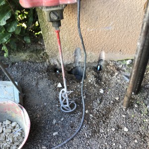 Intervention : Consolidation des fondations sur environ 13 mètres linéaires avec n° 10 micropieux MP60 (marquage CE selon directive européenne EN 1090-1:2009).