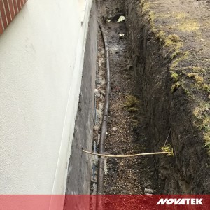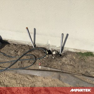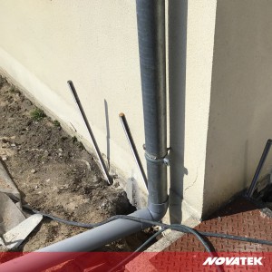 Intervention : Consolidation des fondations sur environ 16 mètres linéaires avec n° 16 micropieux MP60 (marquage CE selon directive européenne EN 1090-1:2009) et n° 16 injections de résine KERASTABLE® à haute densité de type HDR® (Polymères expansifs) sur 1 niveau de profondeur